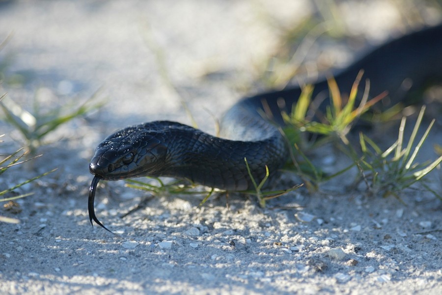 Florida’s endangered eastern indigo snake is one of our most beautiful, second only to the eastern diamondback rattlesnake:) This photo was taken a few years back, and is only the second one I have seen in the wild. Despite my best efforts I haven’t seen another indigo since then, but I keep hope that we will cross paths again one day.