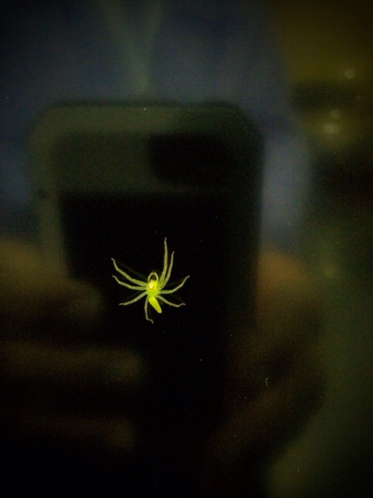 January 9, 2014 I see you, do you see me? This little guy caught my eye while setting up the booth at the trade show this morning. Matches the foliage of the wild coffee, but not so much on the Sony LCD TV. Hopefully he found his way back to the plants before we closed up… Share this: Click to share on X (Opens in new window) X Click to share on Facebook (Opens in new window) Facebook Like Loading... Related