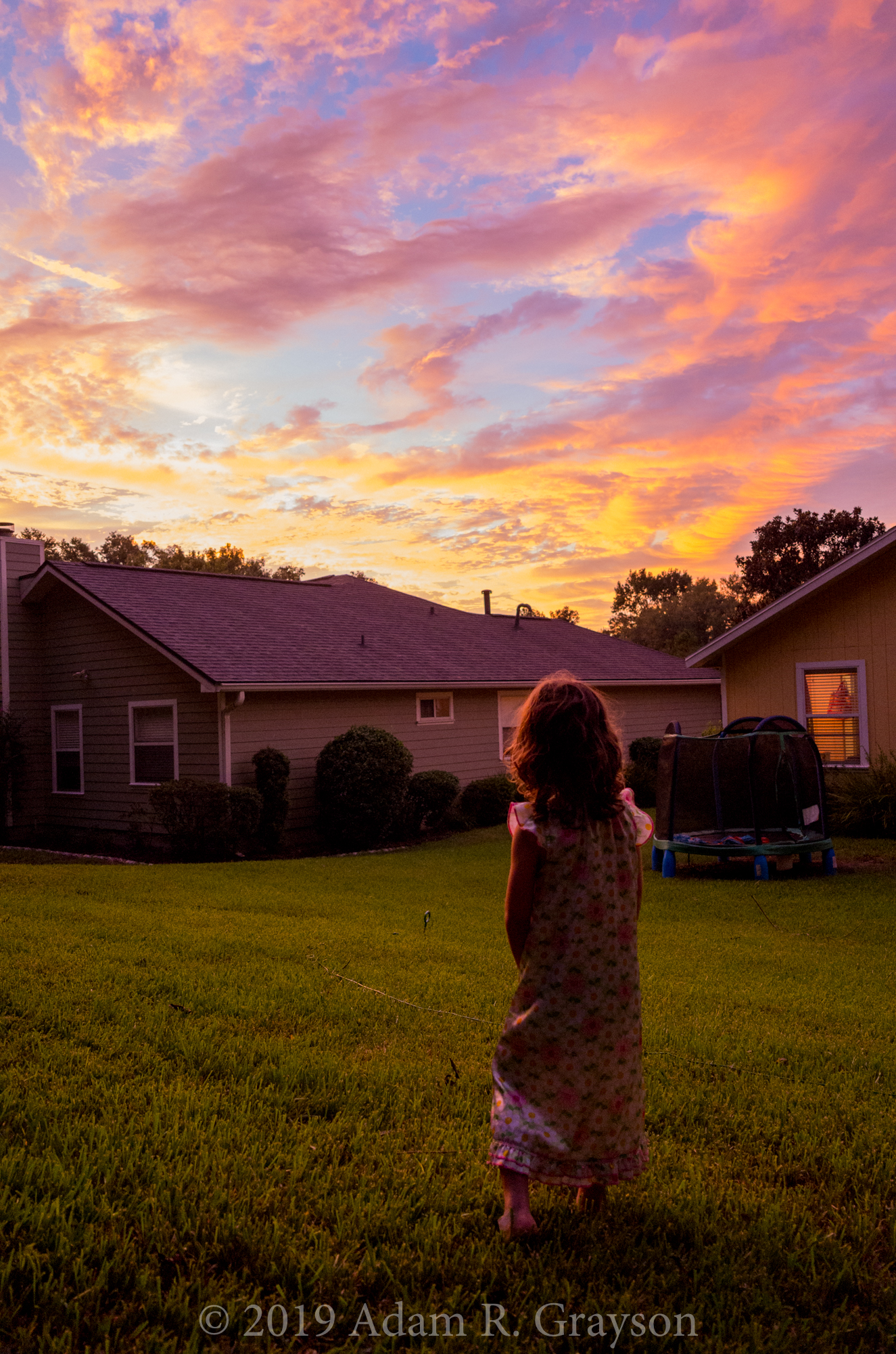 As Hurricane Dorian (thankfully) grazed Florida’s coast the storm brought the most beautiful sunset I have seen since we moved to Gainesville. My youngest daughter must have also thought so as she stopped playing for a moment to admire the beautiful display that briefly played out in the sky above.