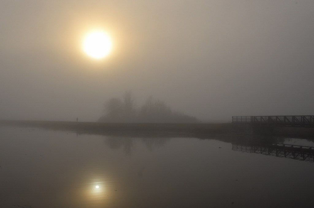 A local wetland park (Sweetwater Wetlands Park) is a destination for local and destination birders. I was out in the morning looking for invasive plants and was luck enough to be there when the fog was still heavy as the sun rose, and caught a few birders out doing the same. The young lady walking along the path, though small in the photo, was the subject of this photo as she disappeared into the mist in search of rare feathers.