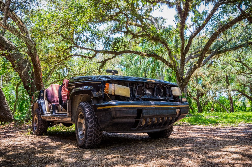 The Jeep Wrangler is a beloved icon with a cult following. Who doesn’t think of riding by the beach top down, doors off, sun shining in your face and a salty breeze to awaken the soul? I think the person who bought this Jeep Grand Cherokee must have had buyer’s remorse and instead of admitting a poor life choice, instead decided to hack off the top and doors of this SUV. Not sure what happens during rain days, but they hopefully have drains in the floorboards. At least this Jeep has found a second life on a farm in Venus, Florida, underneath the beautiful live oak tress to live out its betwixt days.