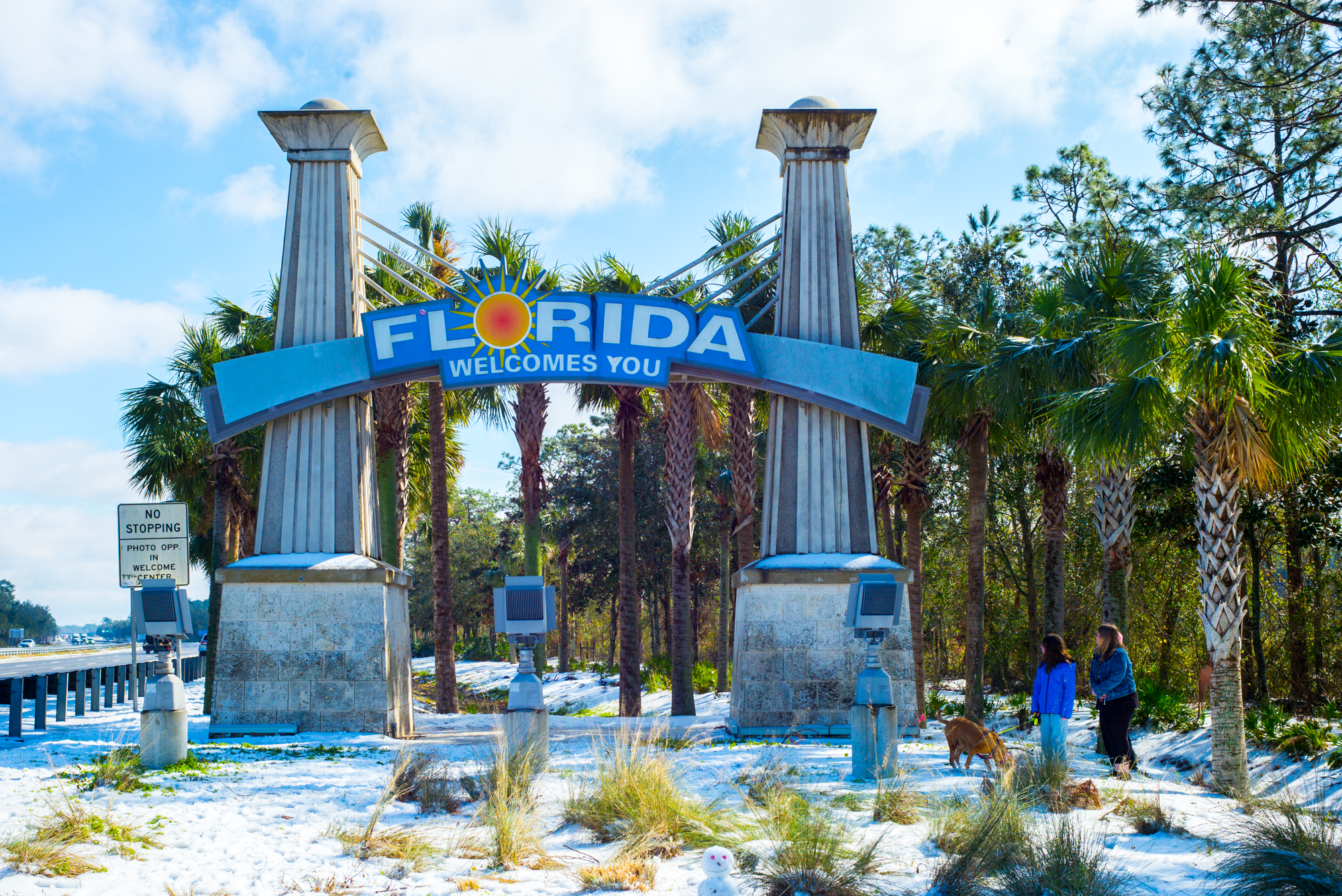 On January 22, 2025 Florida experienced a rare snow day. We were a little south of the action, so we piled up the family and headed north until we saw snow. Right about the Florida / Georgia border is where it was, and this photo of the “Florida Welcomes You” headed south into the state off I-75 provided a rare opportunity of snow in the Sunshine State!