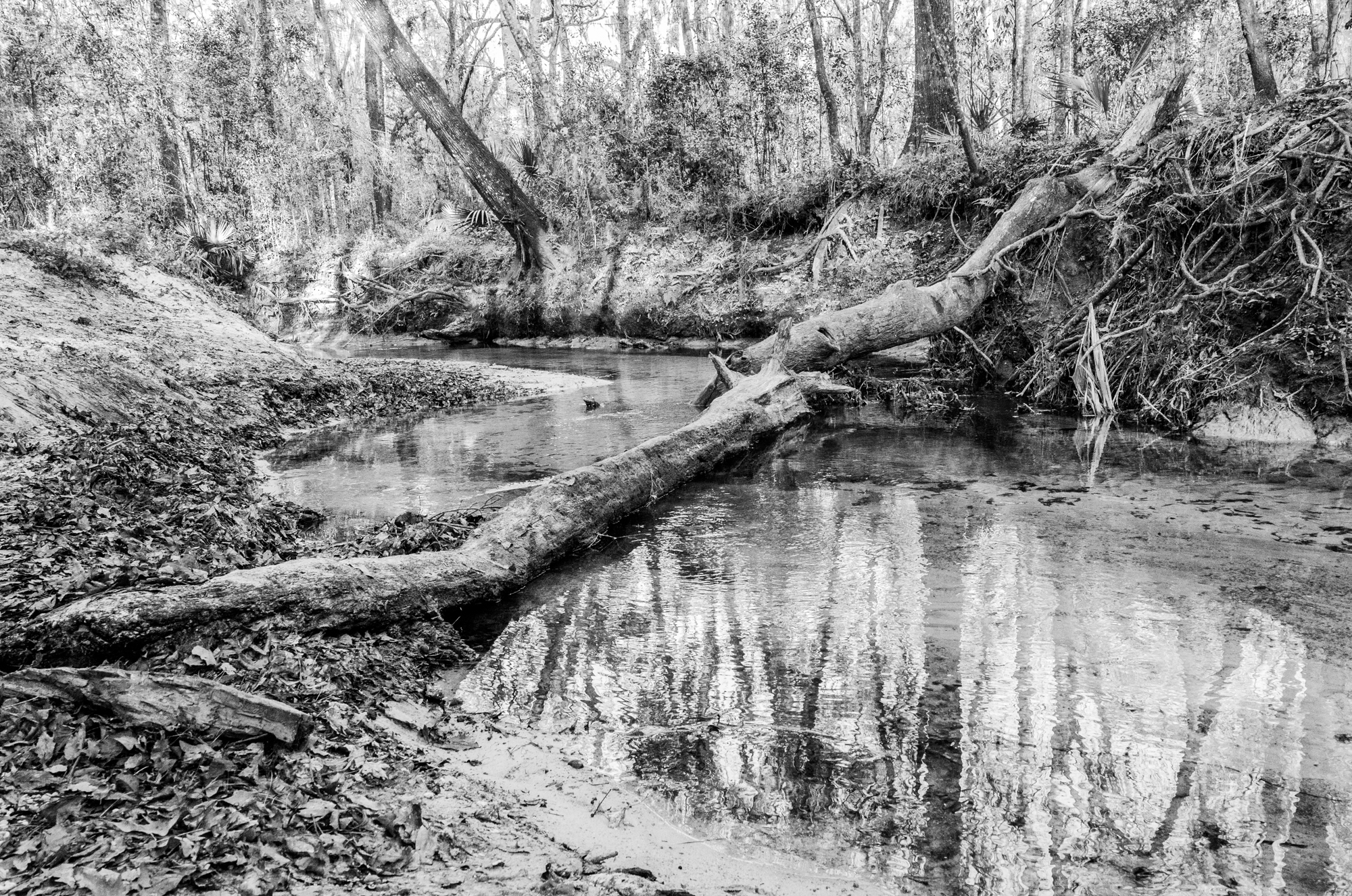 July 19, 2025 Sit down at the quiet creek One of the many great local parks had a nice area for a brief respite along the Hogtown Creek. The coors that day were beautiful, but the black and white image is what I went with. Share this: Click to share on X (Opens in new window) X Click to share on Facebook (Opens in new window) Facebook Like Loading... Related