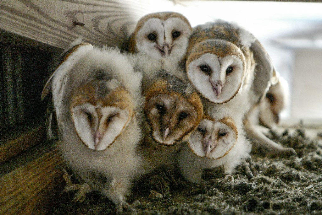 This family of barn owls was less than happy with my interest in them. If you have ever been around barn owls in a nest, they make crazy noises and do this strange dance which is meant to scare you away. Seeing these owls all do this at one time was creepy, but they went back to sleep moments after I left them, leaving me with this haunted vision for years.