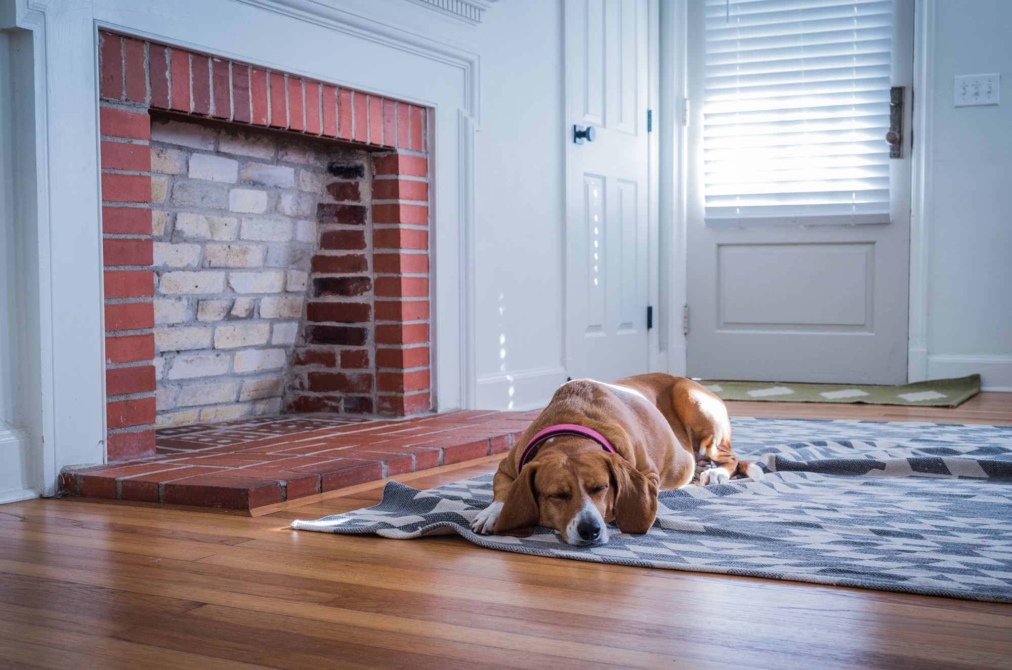 Honey rests peacefully on a rug at a rustic AirBNB in historic Brunswick, Georgia. We don’t always bring the pup as is adds a whole different spin on the trip, but its always fun and she does great. The bricked in fireplace did’t provide any warmth, but its a good placeholder for that cozy-at-home feeling.